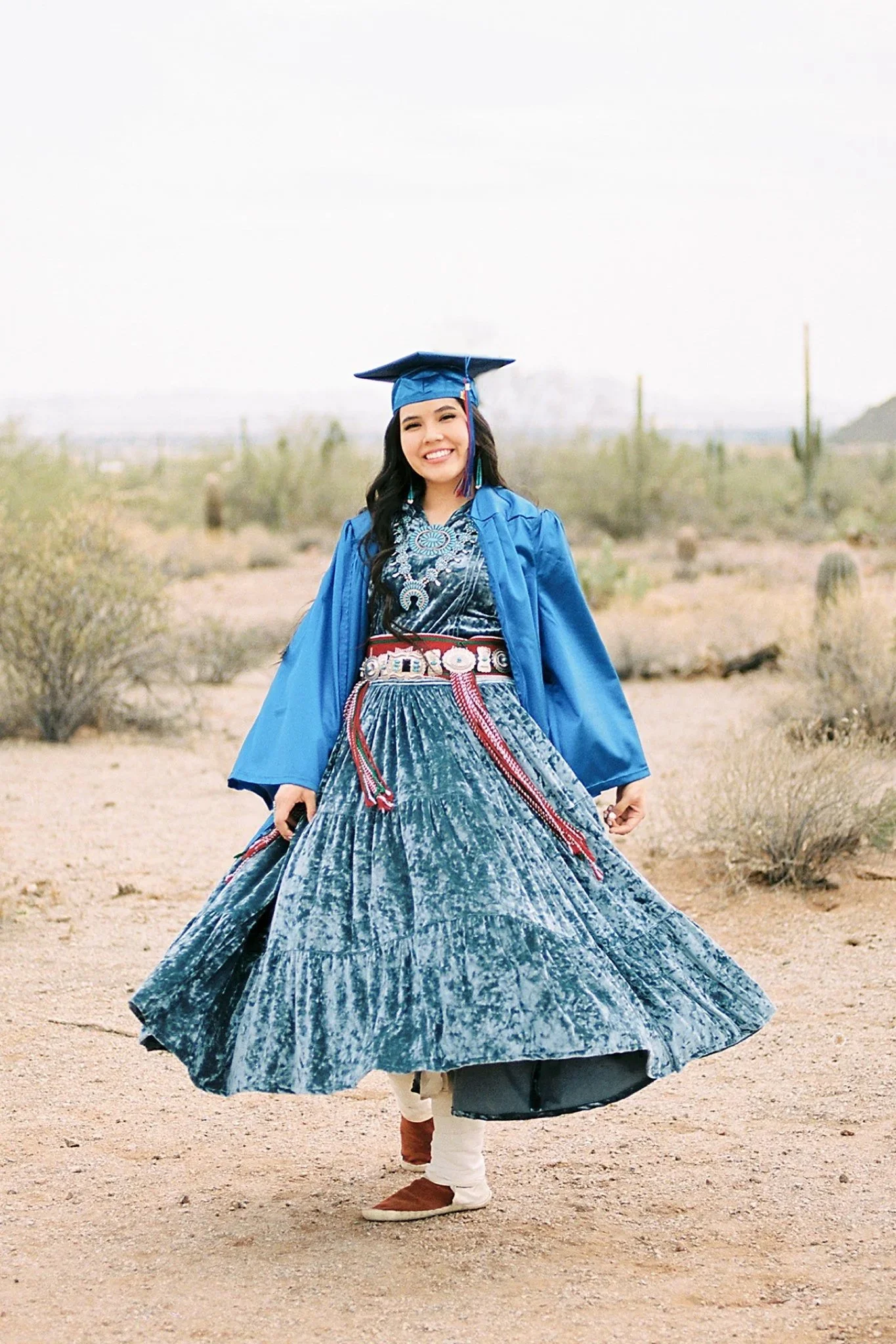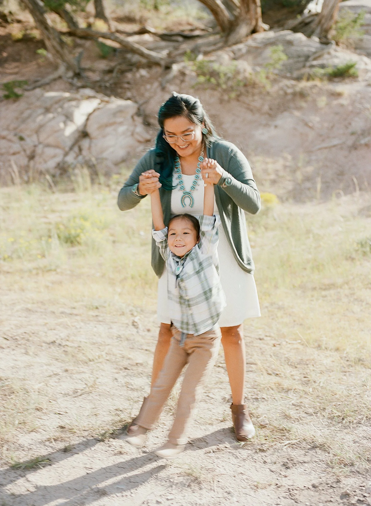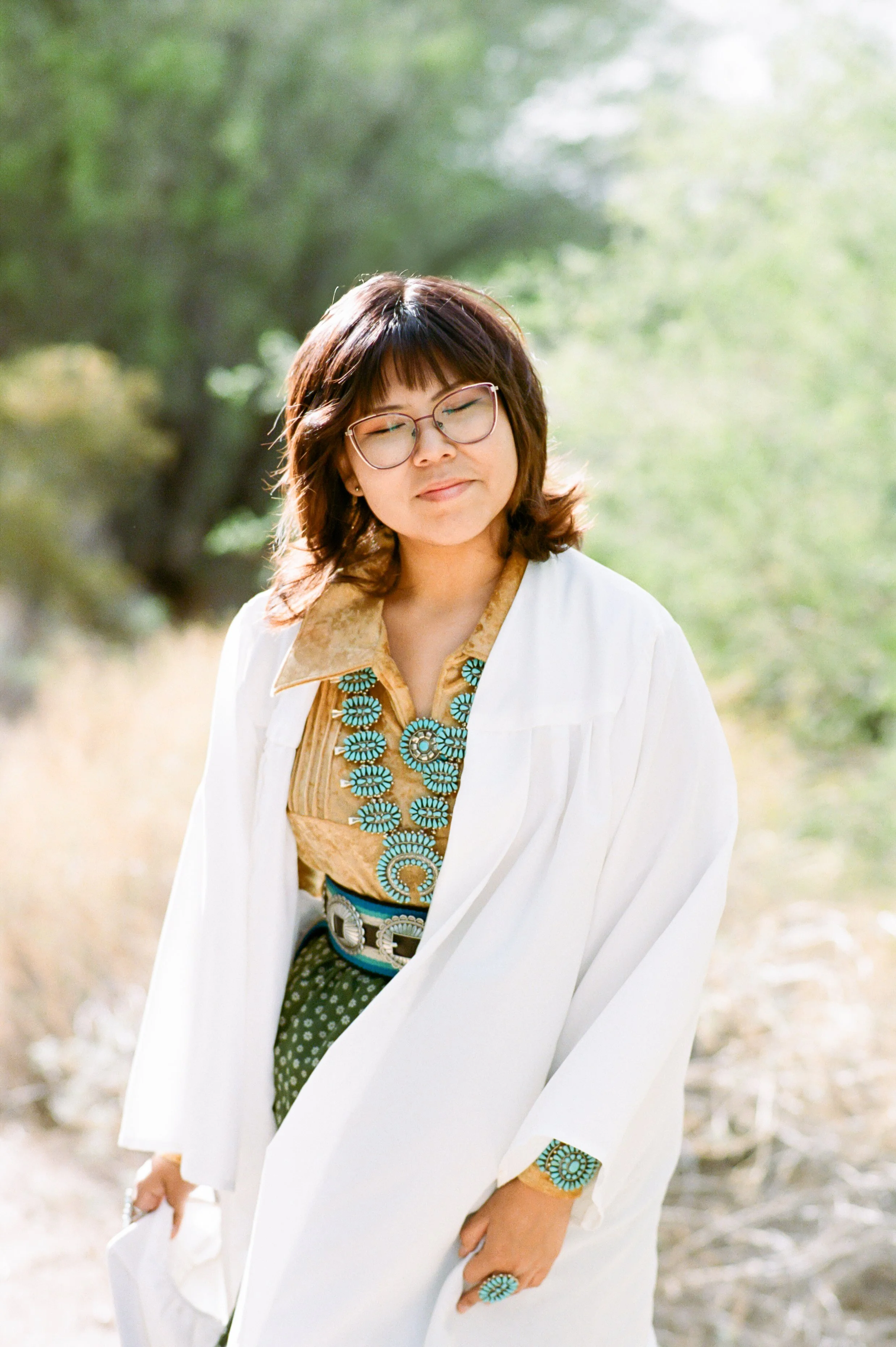 Based in Chandler, Arizona, I am proud to be of Diné/Navajo heritage, my maternal clan is Táchii’nii and my paternal clan is Ashiini. My cheiis are Ta’neeszahnii and my nalis are Tlaashichi’i. I am happily married to my college sweetheart, and together we are blessed with a wonderful son. I cherish quality time with my family, including our adorable pups, Goose and Kiwi.