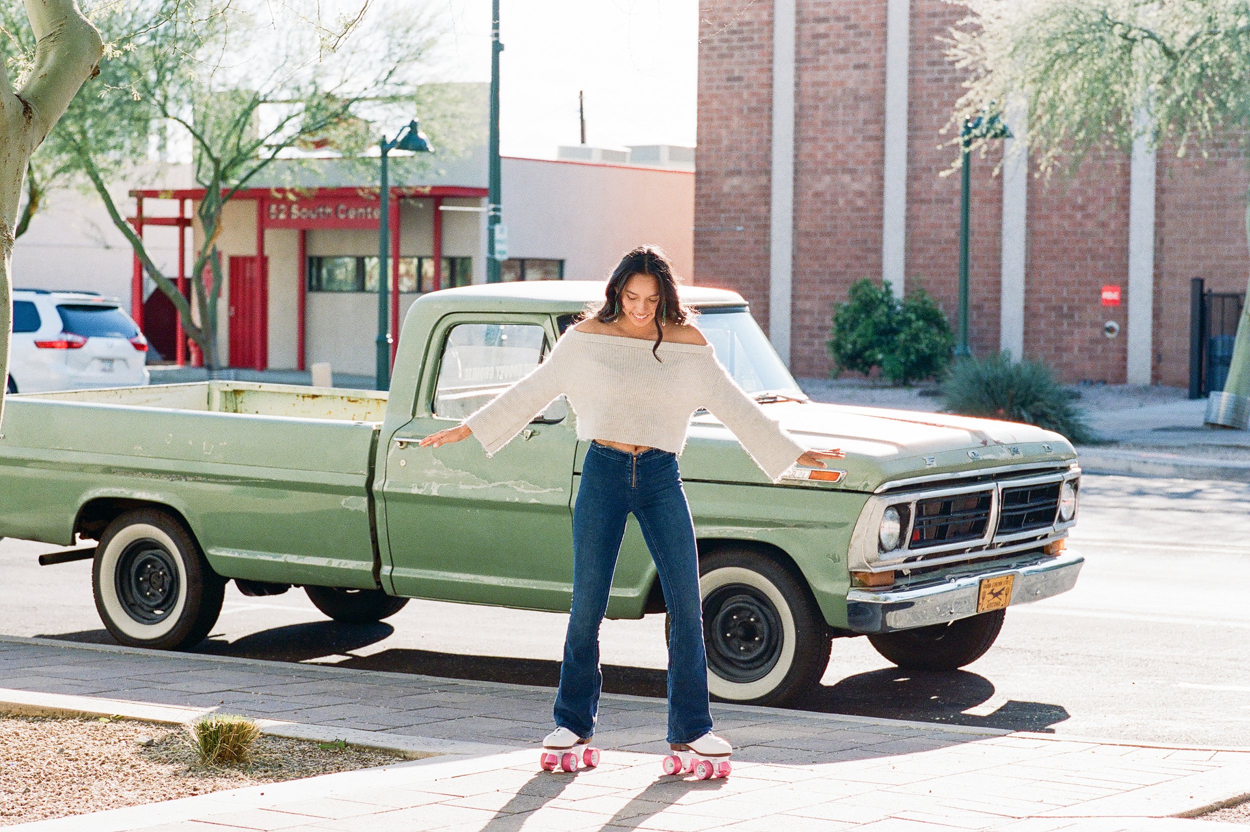 I’m in my color era! I’m always on the hunt for patterns, colors and flowers. I love rich colors, which is why I love using film. So much depth and true to life colors. Film photos are timeless. I love adding movement and excitement to my photos.